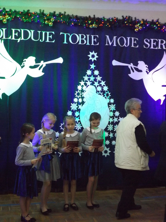 W dniu 13 stycznia 2017r. w naszej szkole odbył się XVIII Gminny Konkurs Kolęd i Pastorałek pod patronatem Wójta Gminy Rząśnik Pana Pawła Kołodziejskiego. Nasz zespół w składzie: Natalia Kukwa, Amelia Fornalska, Karolina Wróbel, Karolina Orłowska, Kuba Dudzik zajął III miejsce w kategorii klas IV-VI.