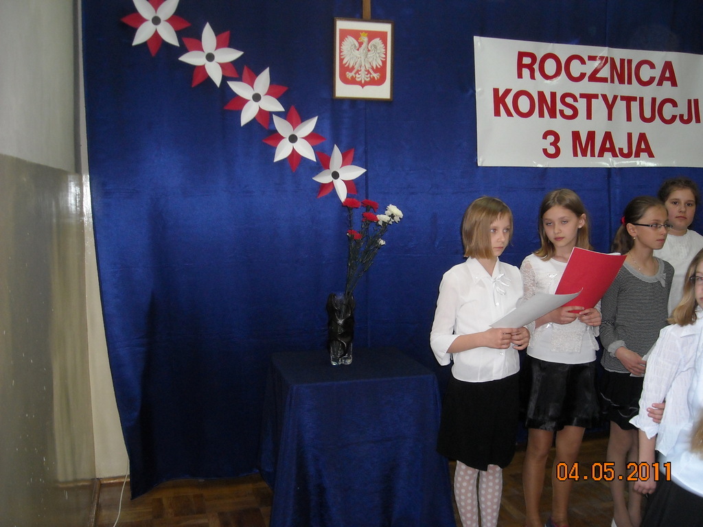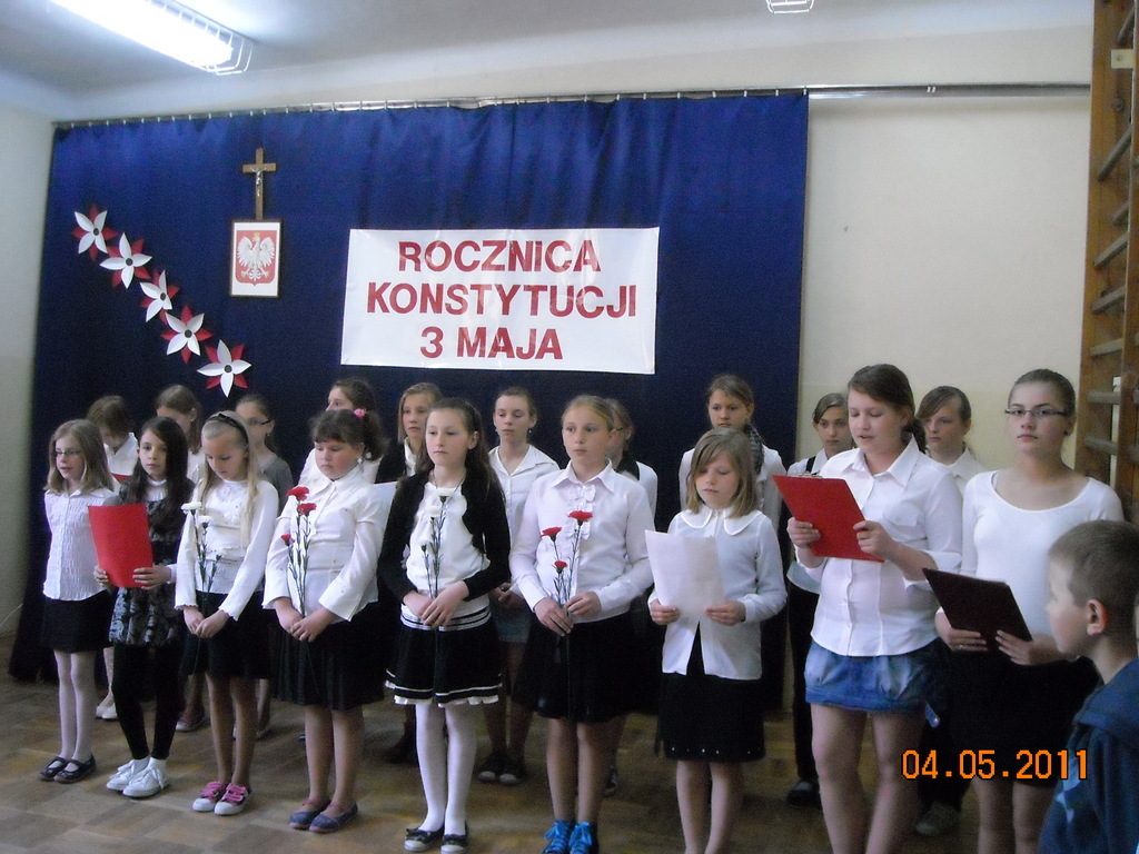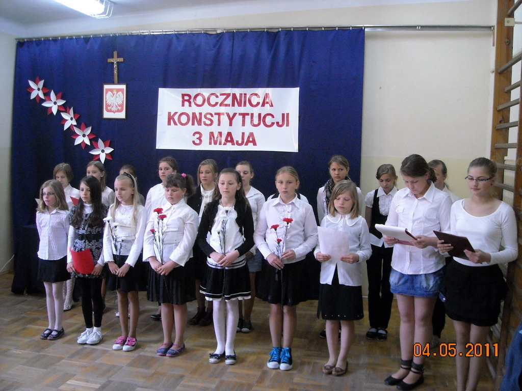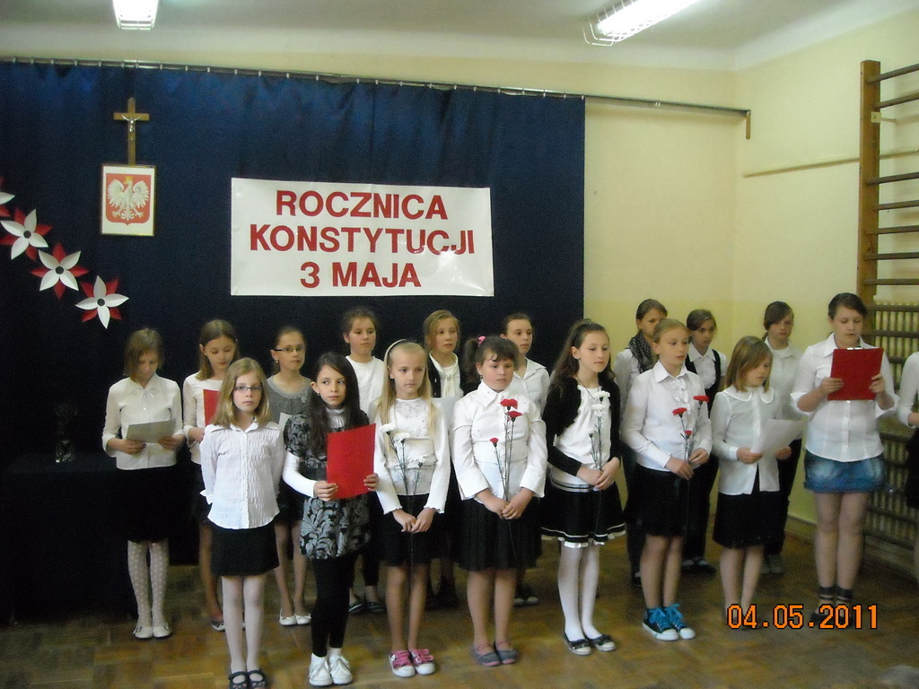 Z okazji 220 rocznicy uchwalenia Konstytucji 3 Maja uczniowie pod kierunkiem Pani Danuty Deptuły i Pani Hanny Mariańskiej przygotowali akademię upamiętniającą tamte wydarzenia historyczne.