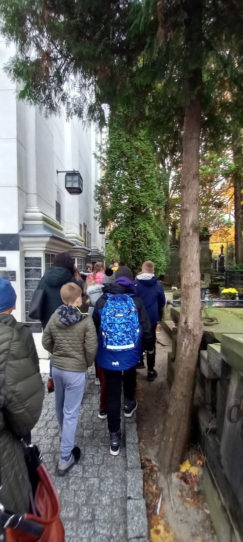 20 października uczniowie klas III -VIII wraz z opiekunami wybrali się na wycieczkę do Warszawy. Najpierw zwiedzili Cmentarz Powązkowski. Pani przewodnik przybliżyła uczniom historię cmentarza. Ta ponad 200-letnia nekropolia jest miejscem spoczynku wielu znakomitych Polaków, lecz także zwykłych obywateli Warszawy, dla dzieci była to ciekawa lekcja historii.