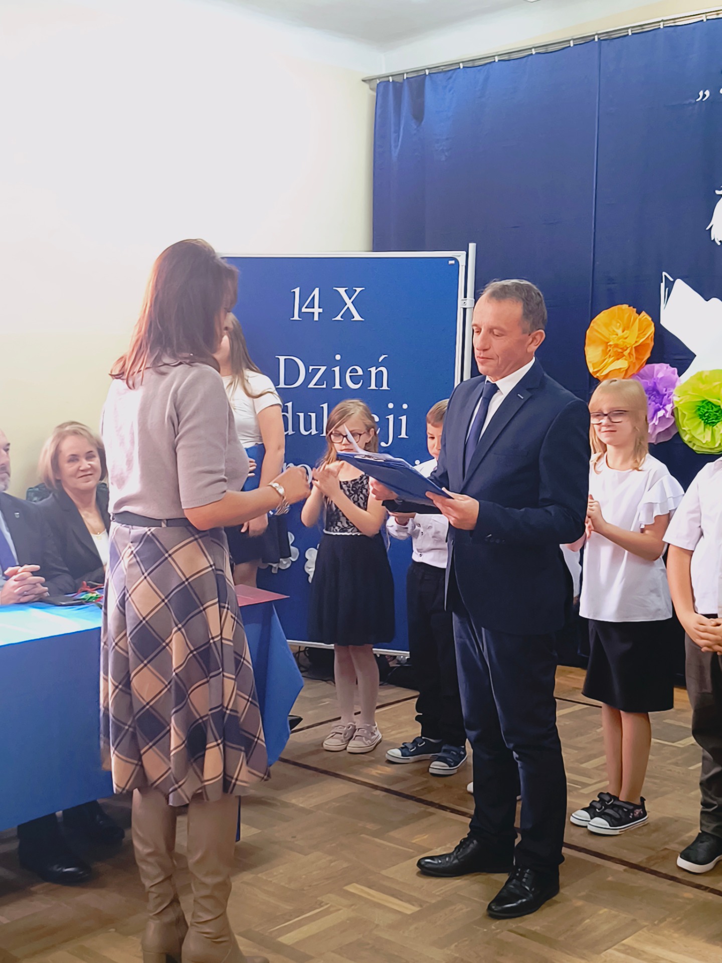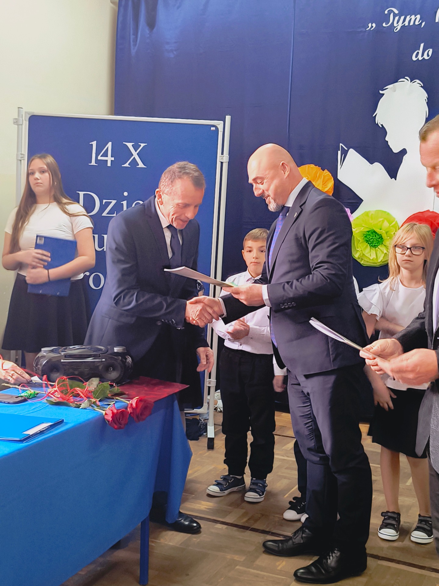 Pan Wójt Marek Leszczyński podziękował nauczycielom i pracownikom oświaty za ich nieoceniony wkład w wychowanie i edukację dzieci oraz młodzieży z naszej gminy. Podkreślił kluczową rolę nauczycieli w rozwoju lokalnej społeczności.