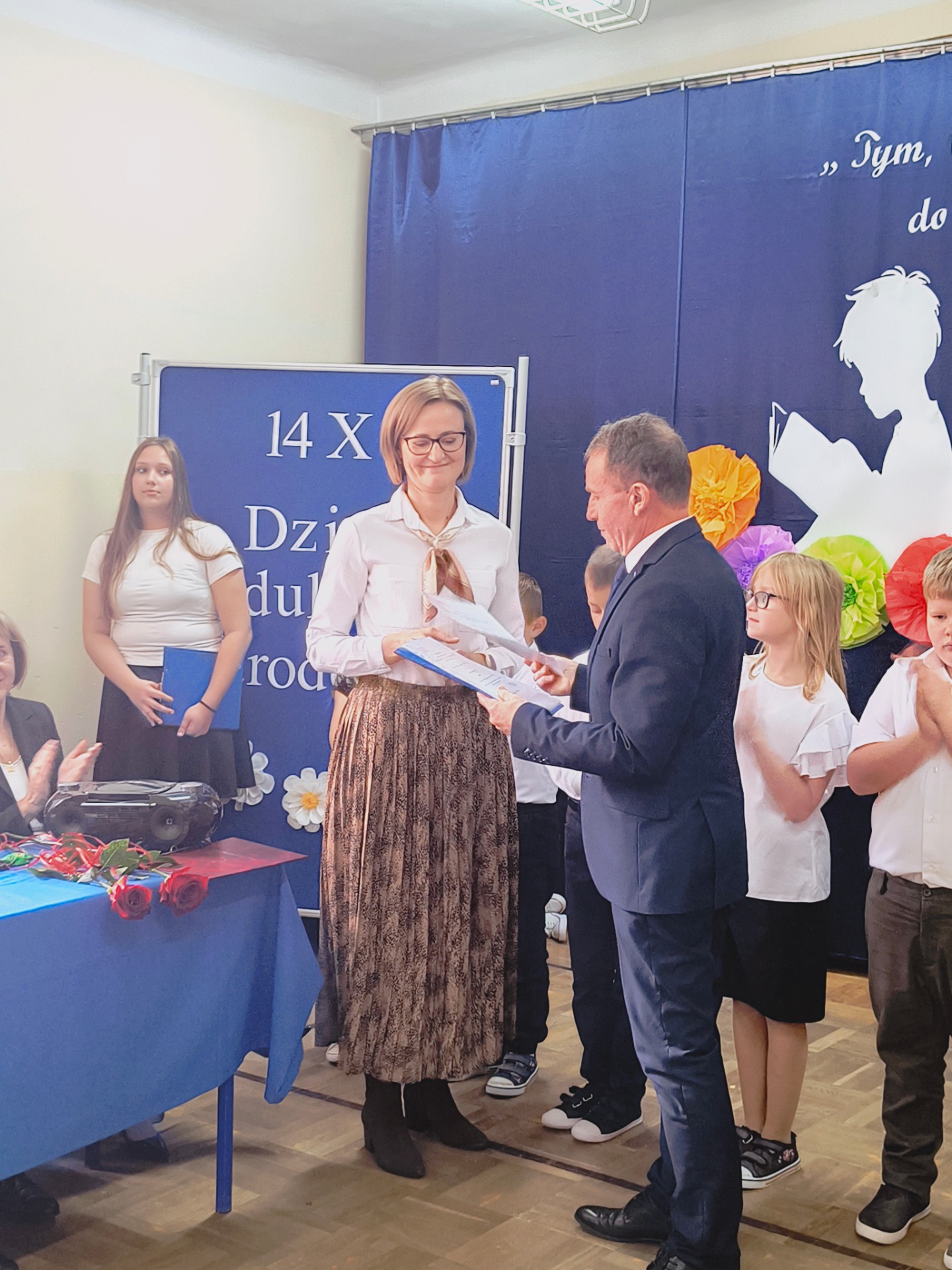 W poniedziałek, 13 października, cała społeczność naszej szkoły zgromadziła się na uroczystym apelu z okazji Dnia Edukacji Narodowej, powszechnie znanego jako Dzień Nauczyciela. Była to wyjątkowa okazja, aby w szczególny sposób podziękować naszym pedagogom za ich codzienny trud, cierpliwość i zaangażowanie.