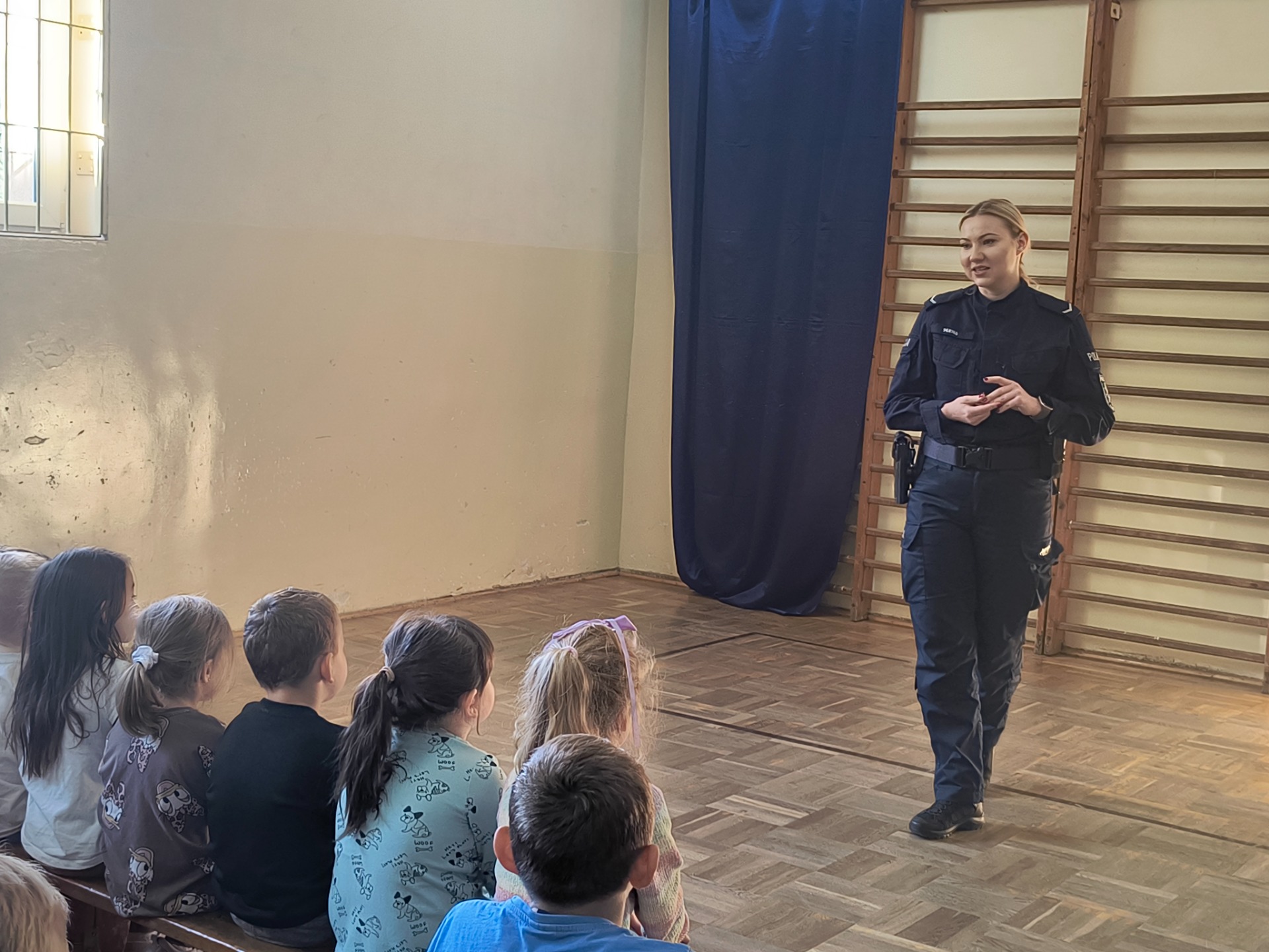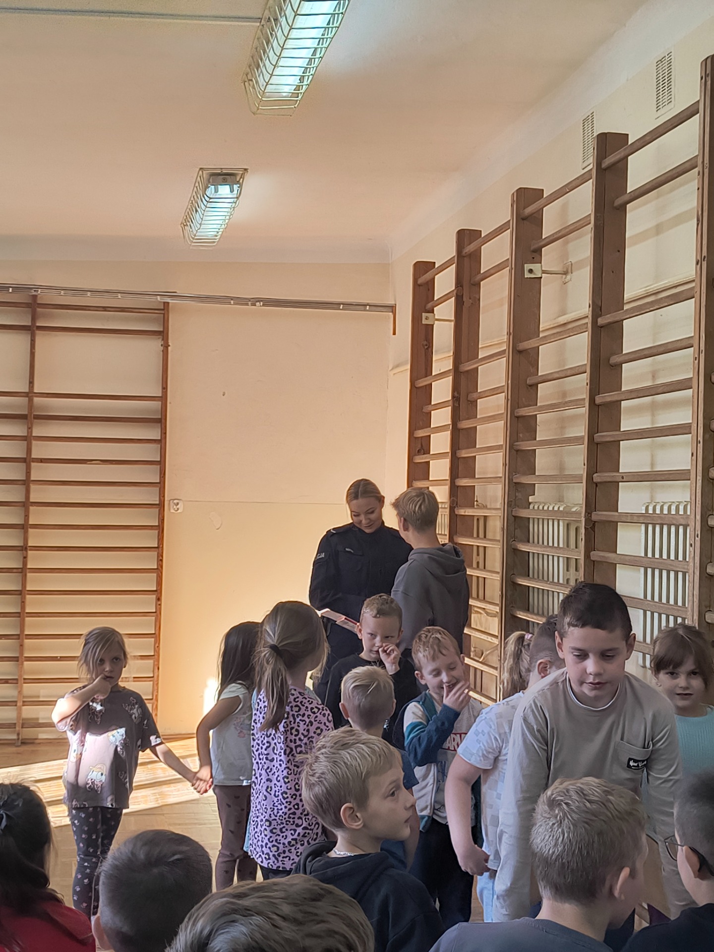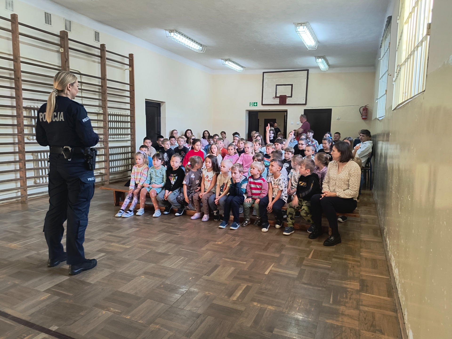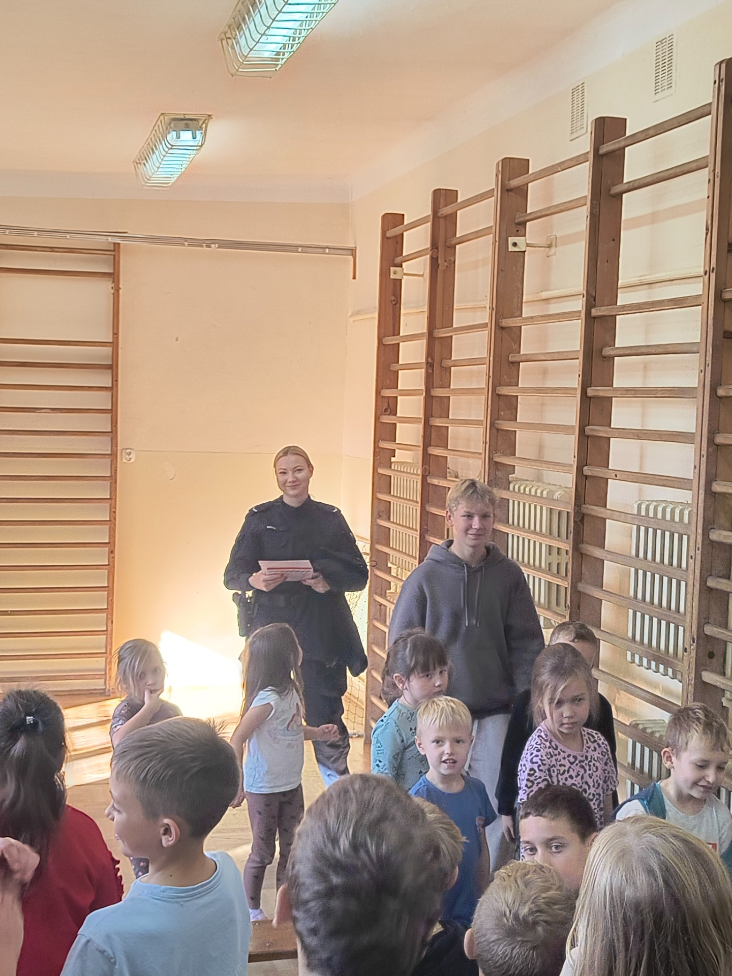 Pani Policjant zwróciła również szczególną uwagę na coraz bardziej popularne środki transportu – hulajnogi elektryczne. Uczniowie poznali przepisy dotyczące ich użytkowania, obowiązki kierującego oraz zasady bezpiecznego poruszania się po ścieżkach rowerowych i chodnikach.