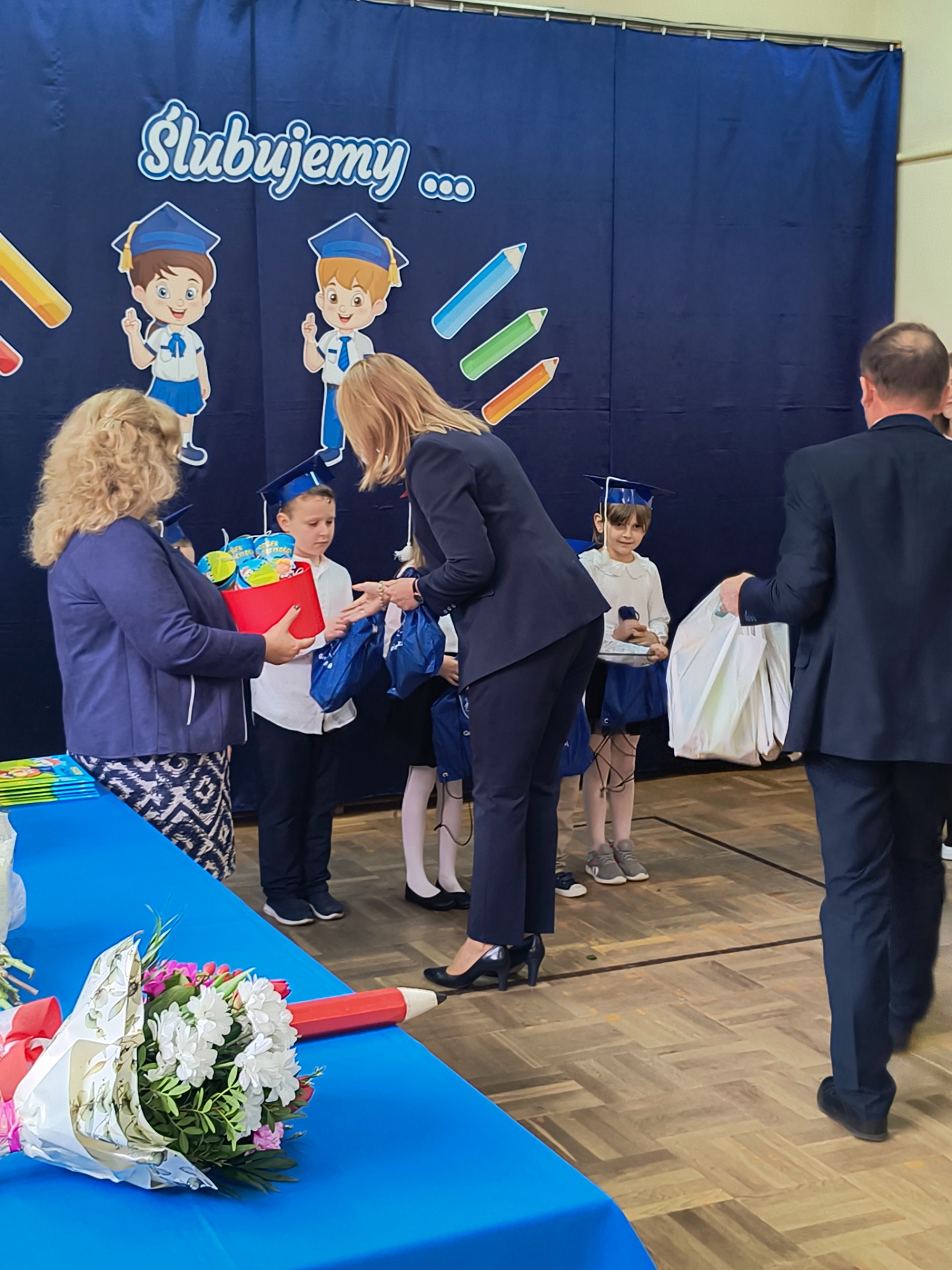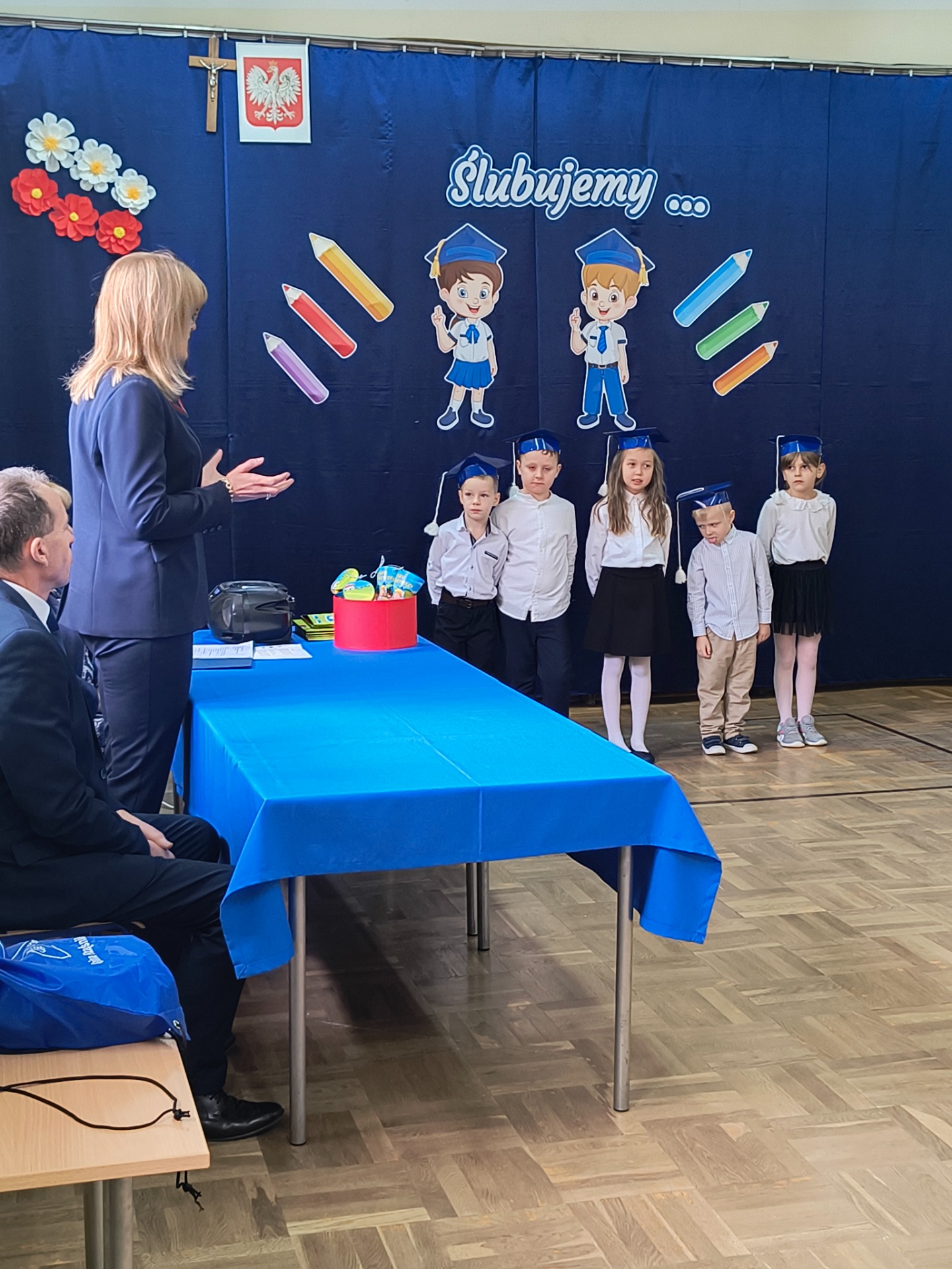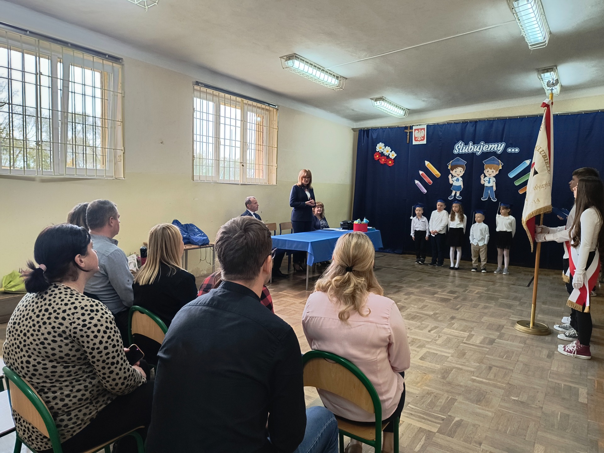 W uroczystości wzięła również udział Zastępca Wójta Gminy Rząśnik – Pani Agnieszka Londzin, która skierowała do uczniów serdeczne gratulacje i życzenia wielu sukcesów w nauce oraz radości z odkrywania szkolnego świata.