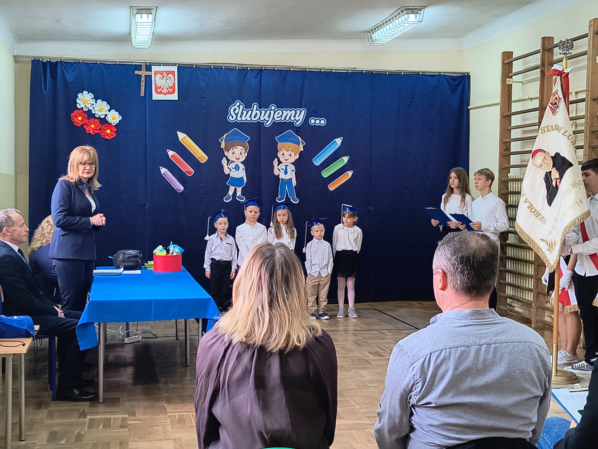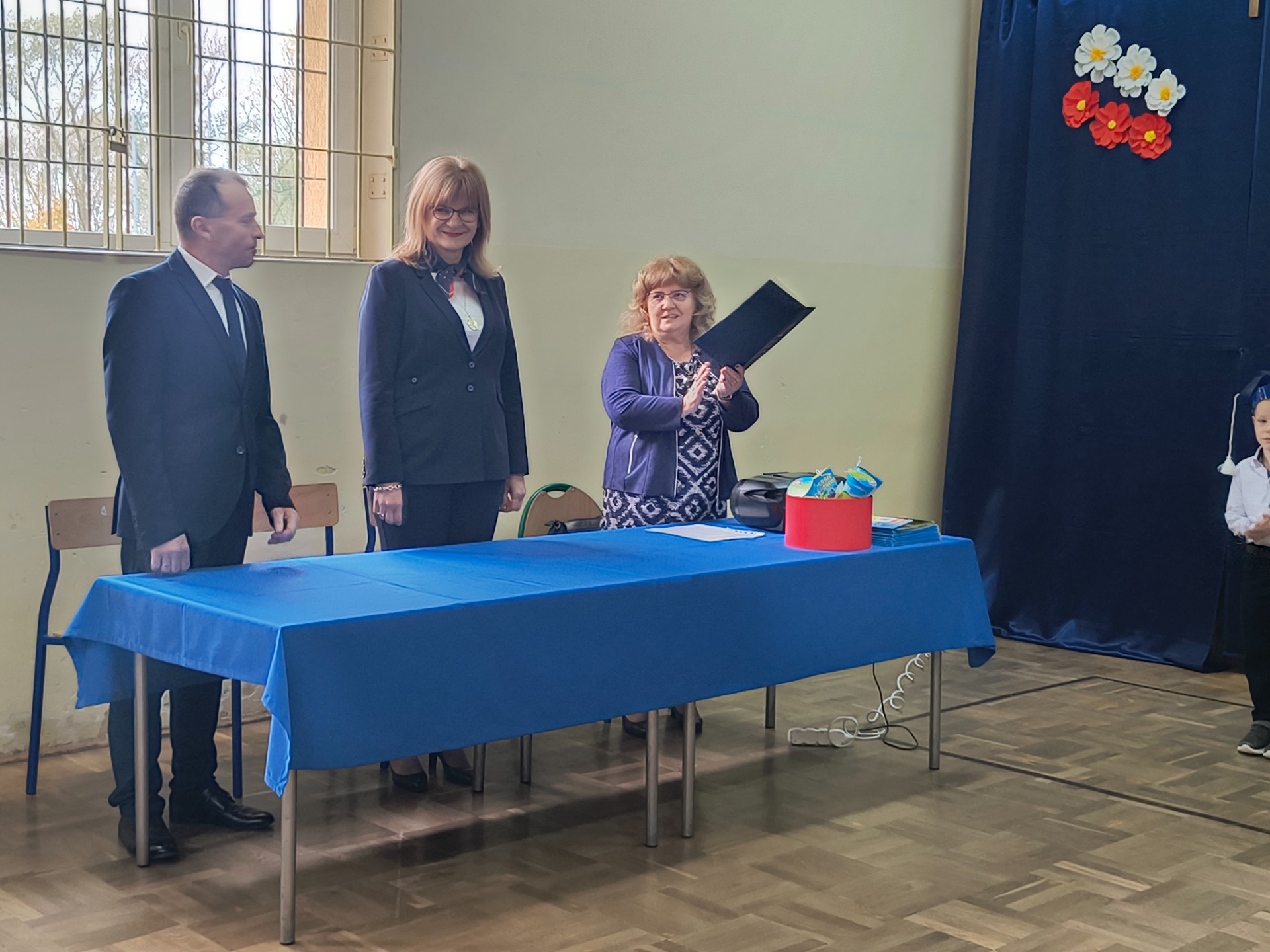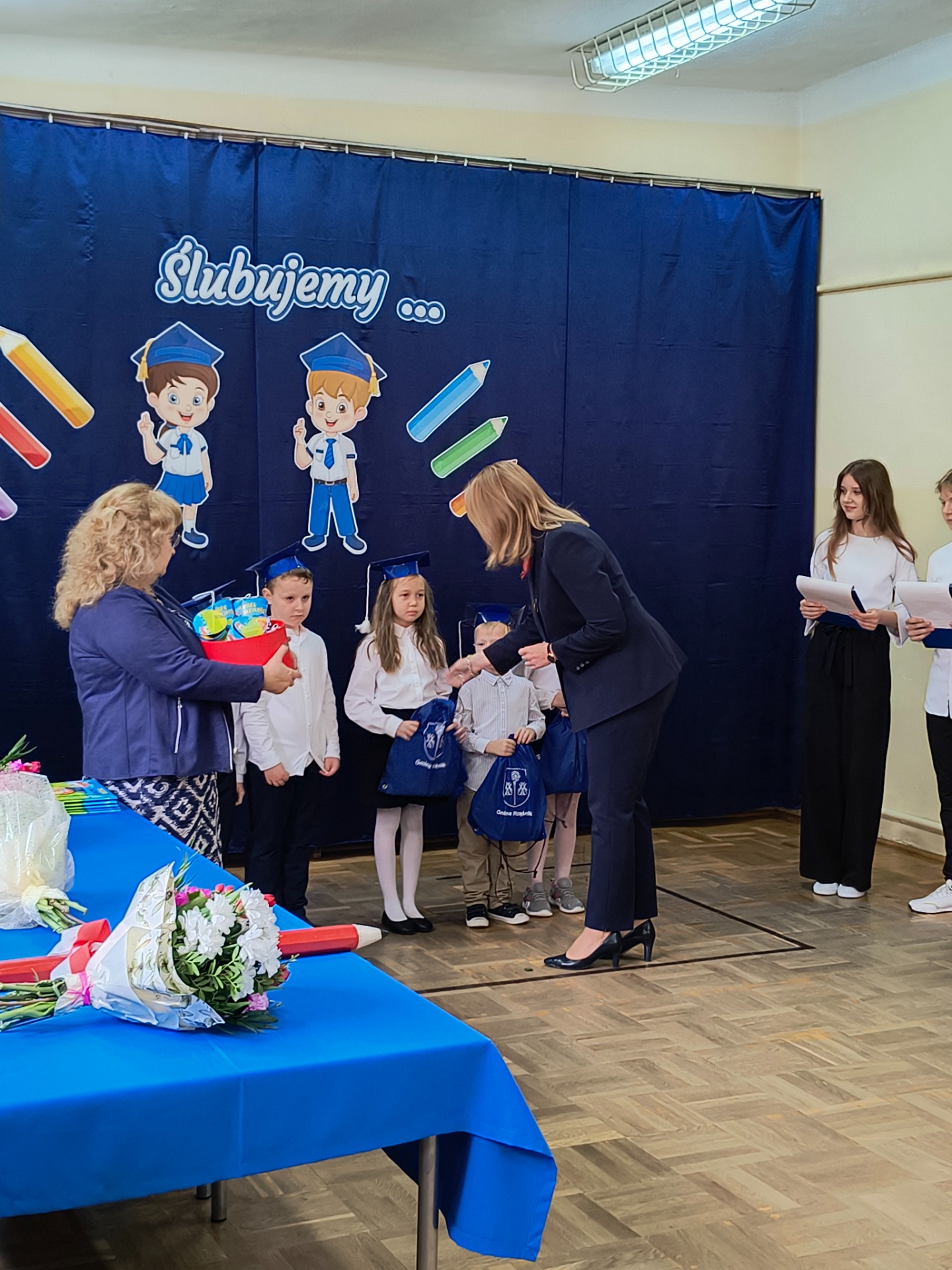 W uroczystości wzięła również udział Zastępca Wójta Gminy Rząśnik – Pani Agnieszka Londzin, która skierowała do uczniów serdeczne gratulacje i życzenia wielu sukcesów w nauce oraz radości z odkrywania szkolnego świata.