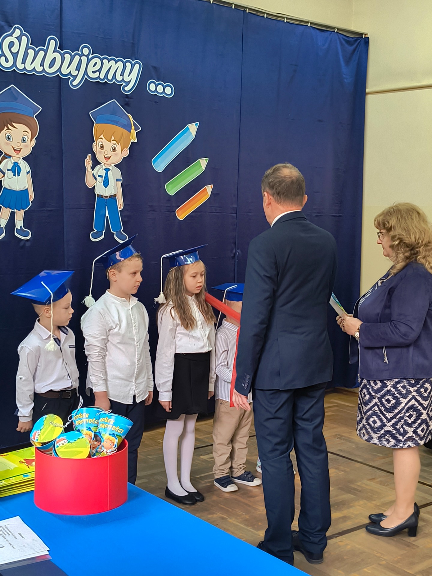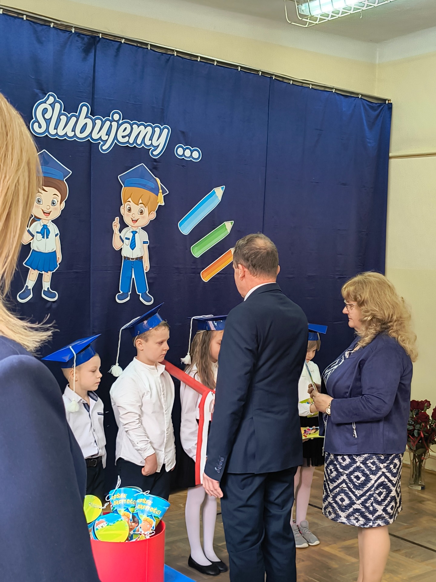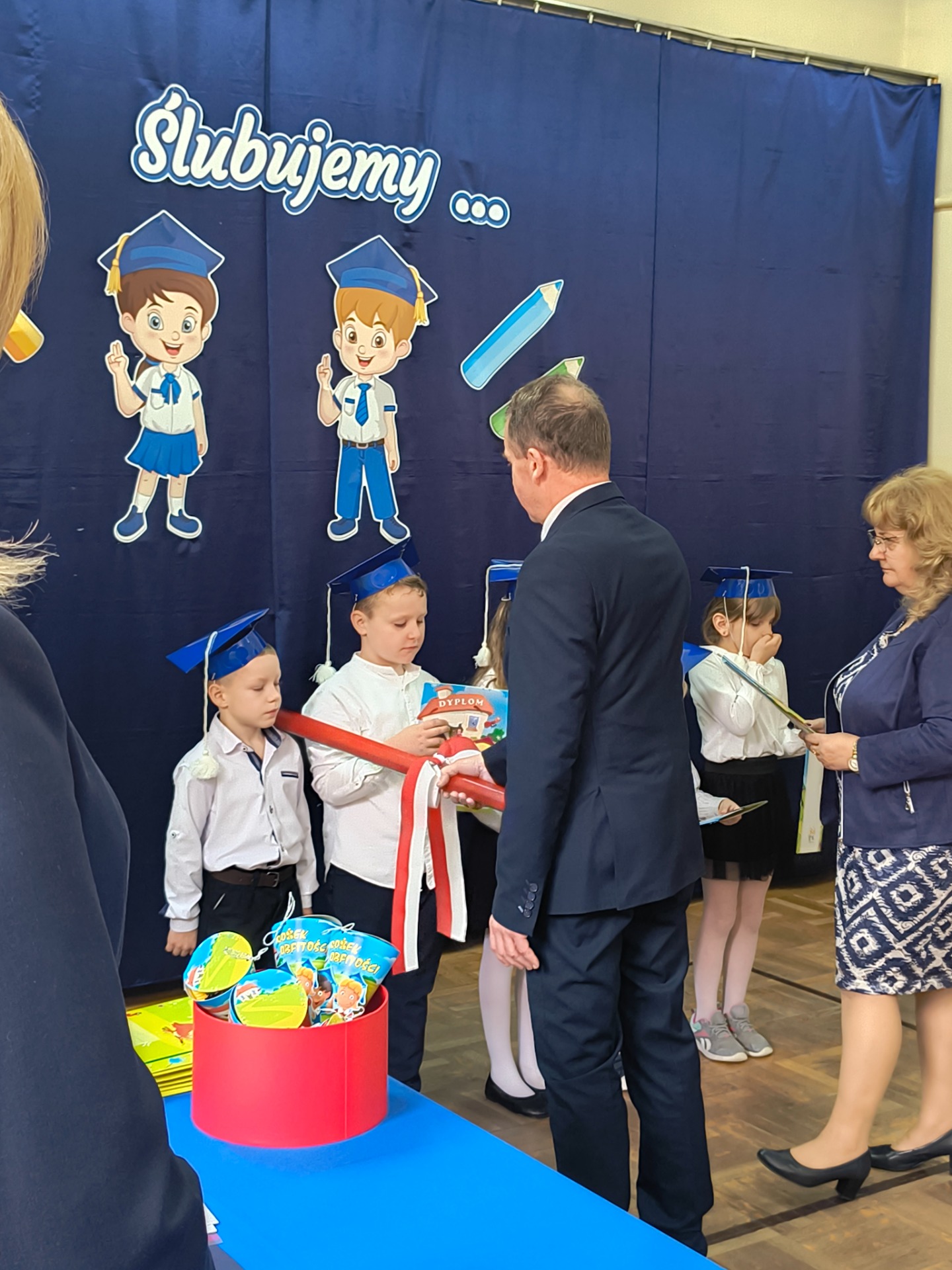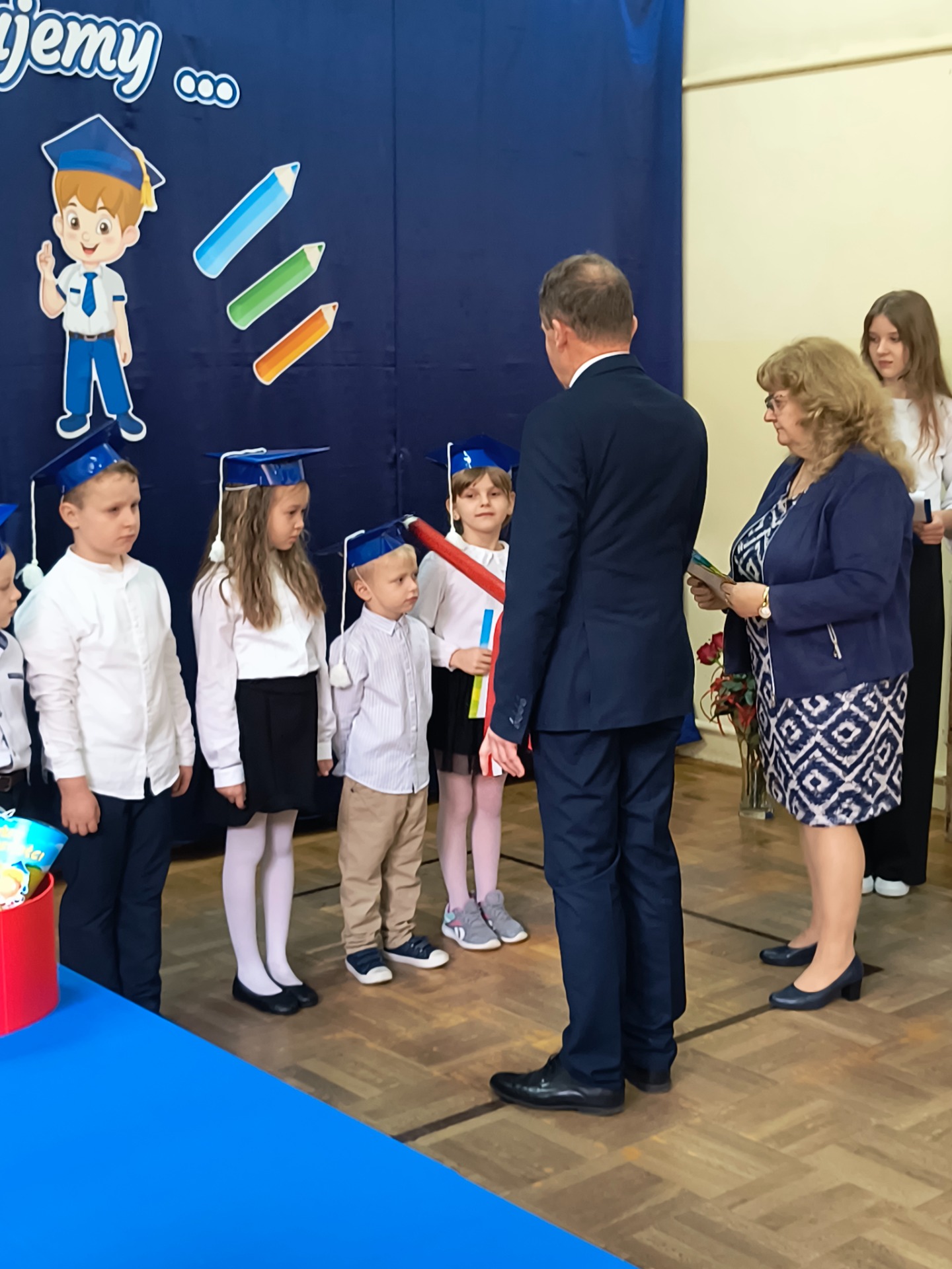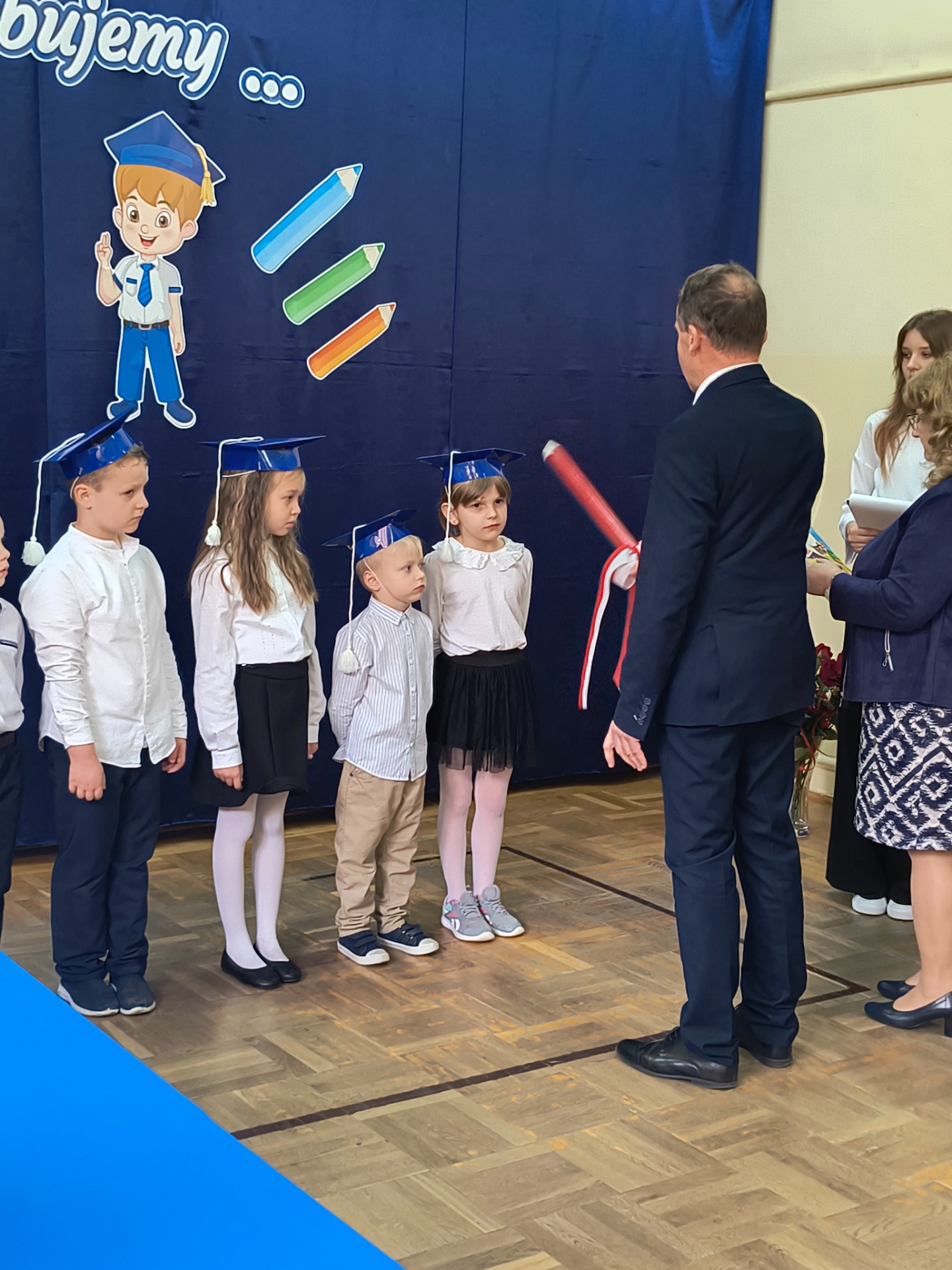 Uroczystość rozpoczęła się od części artystycznej przygotowanej przez uczniów klasy pierwszej pod opieką wychowawcy. Dzieci z ogromnym zaangażowaniem recytowały wiersze, śpiewały piosenki i prezentowały swoje umiejętności, zdobywając gromkie brawa od zgromadzonych gości, nauczycieli i rodziców.