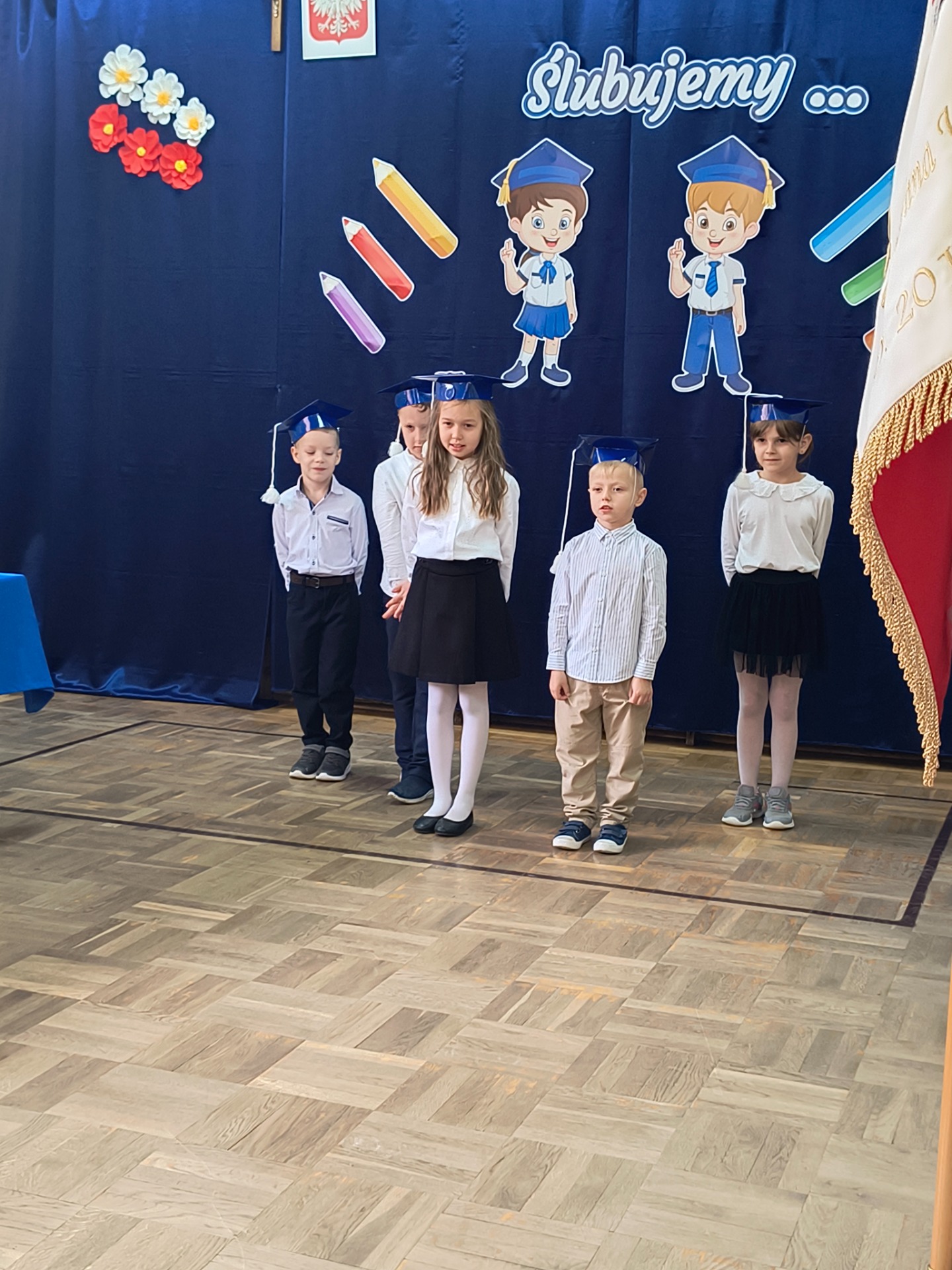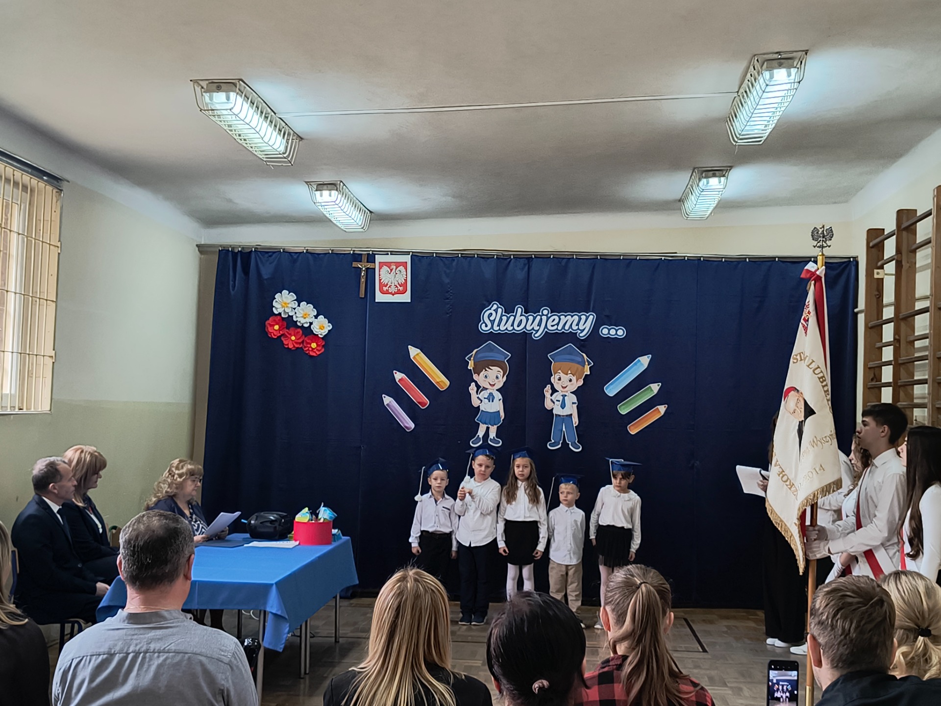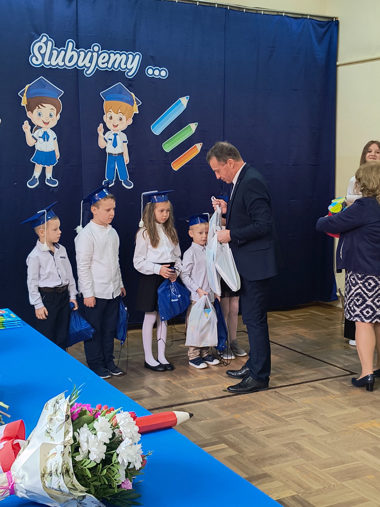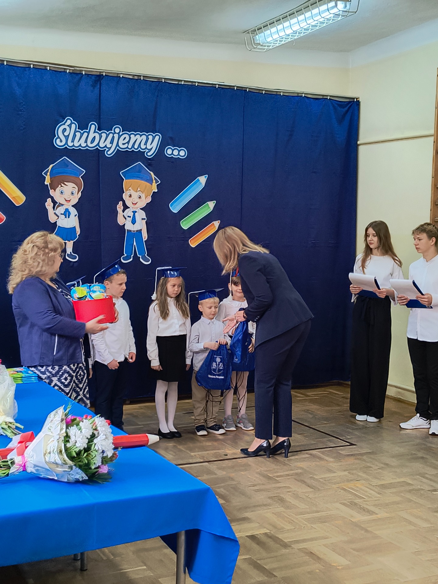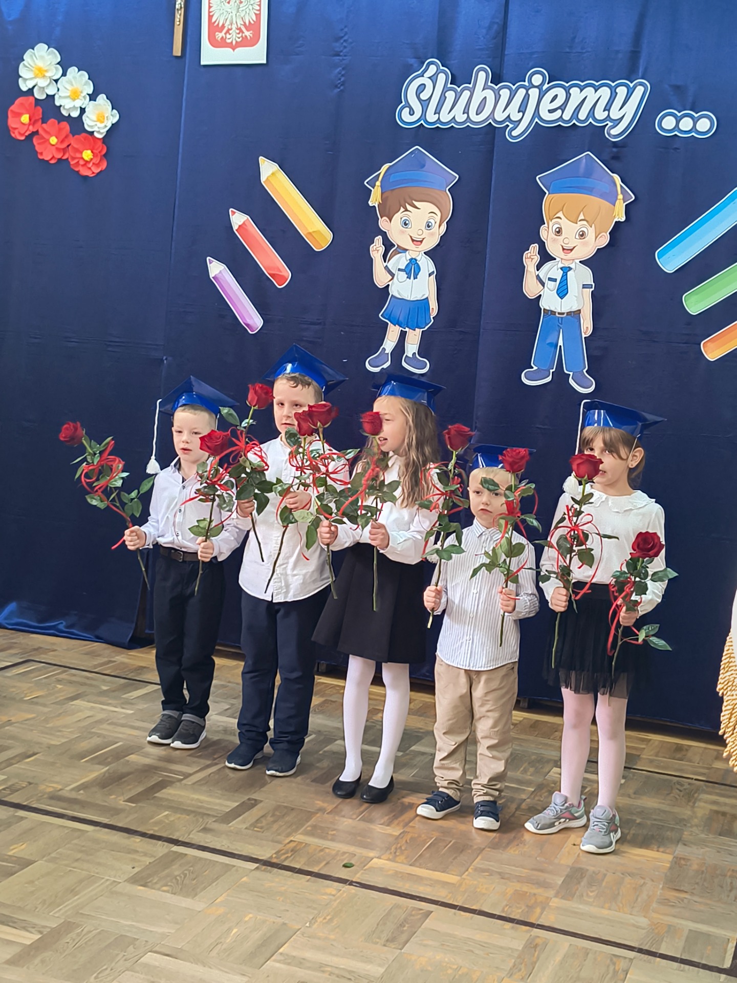 Uroczystość rozpoczęła się od części artystycznej przygotowanej przez uczniów klasy pierwszej pod opieką wychowawcy. Dzieci z ogromnym zaangażowaniem recytowały wiersze, śpiewały piosenki i prezentowały swoje umiejętności, zdobywając gromkie brawa od zgromadzonych gości, nauczycieli i rodziców.