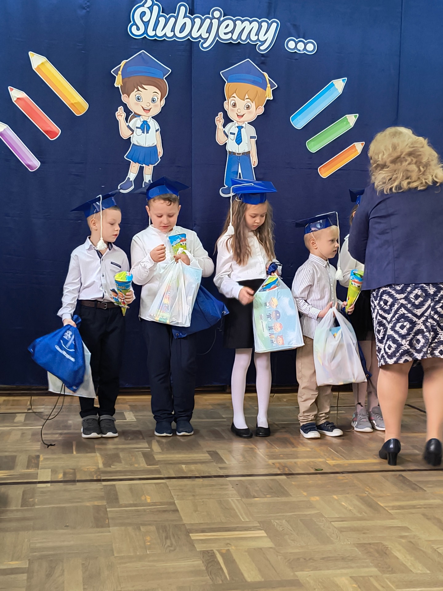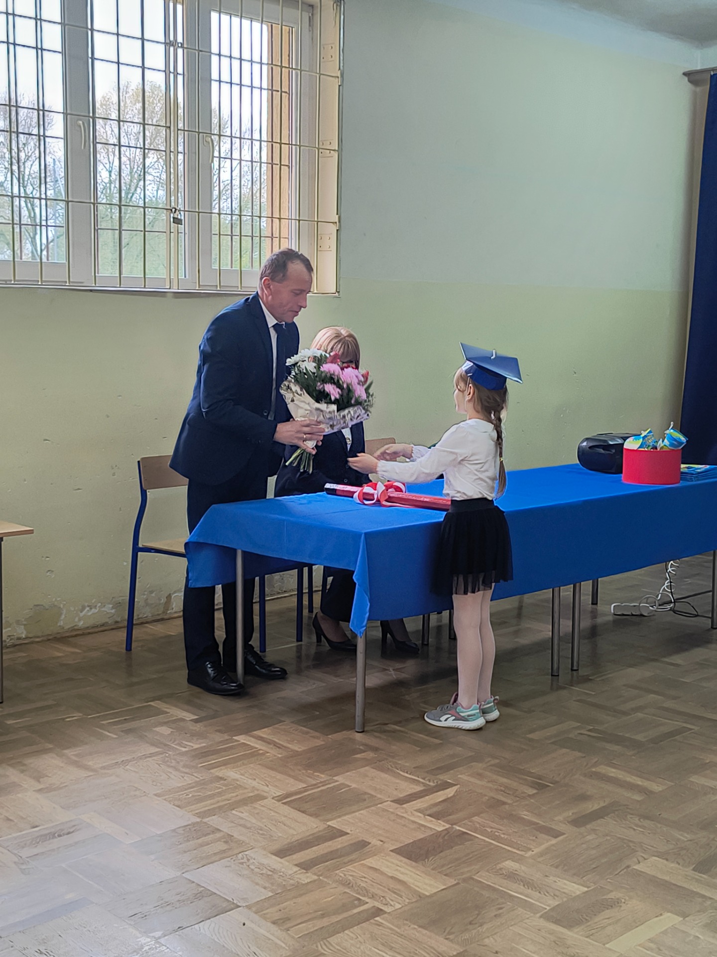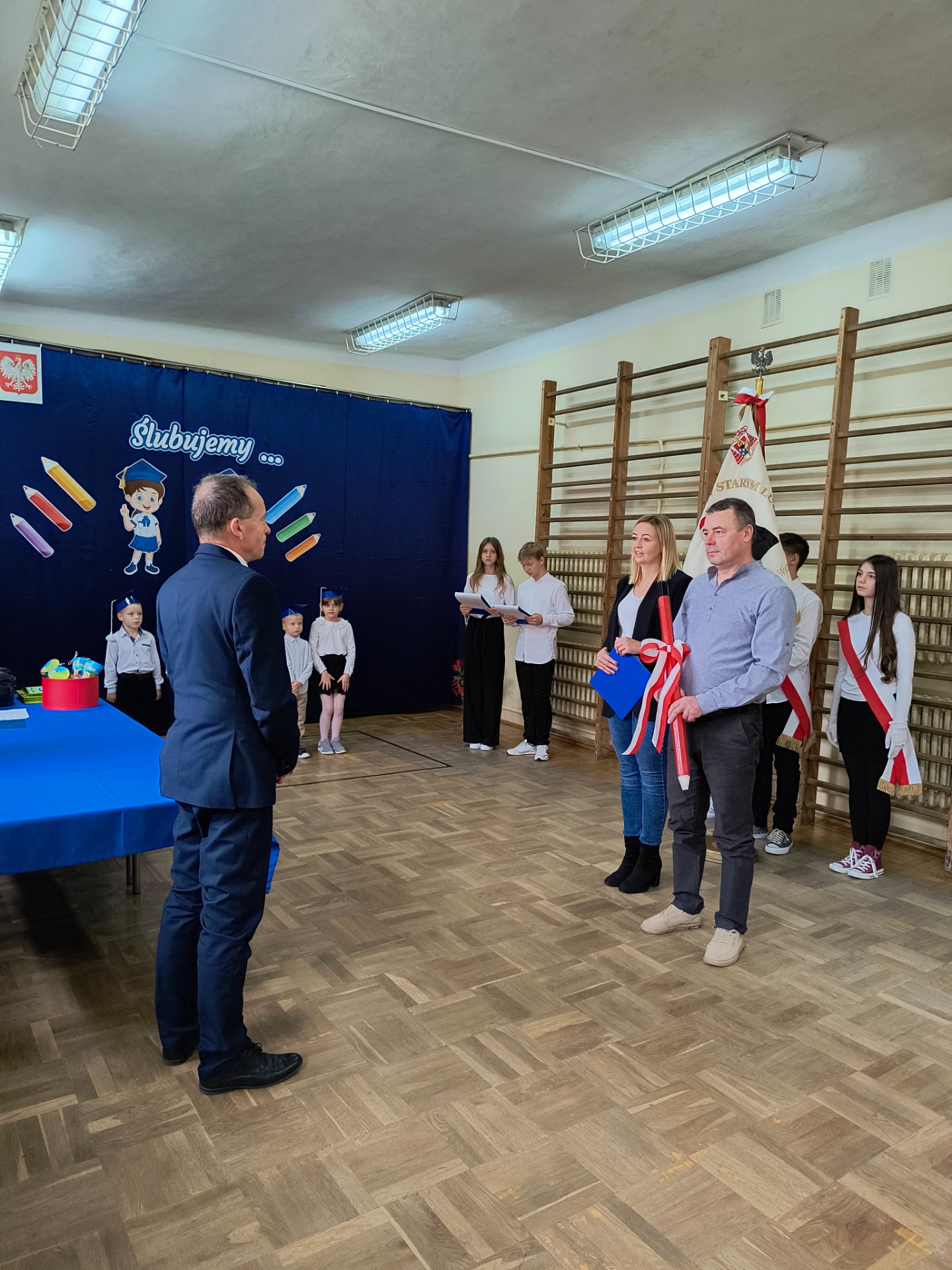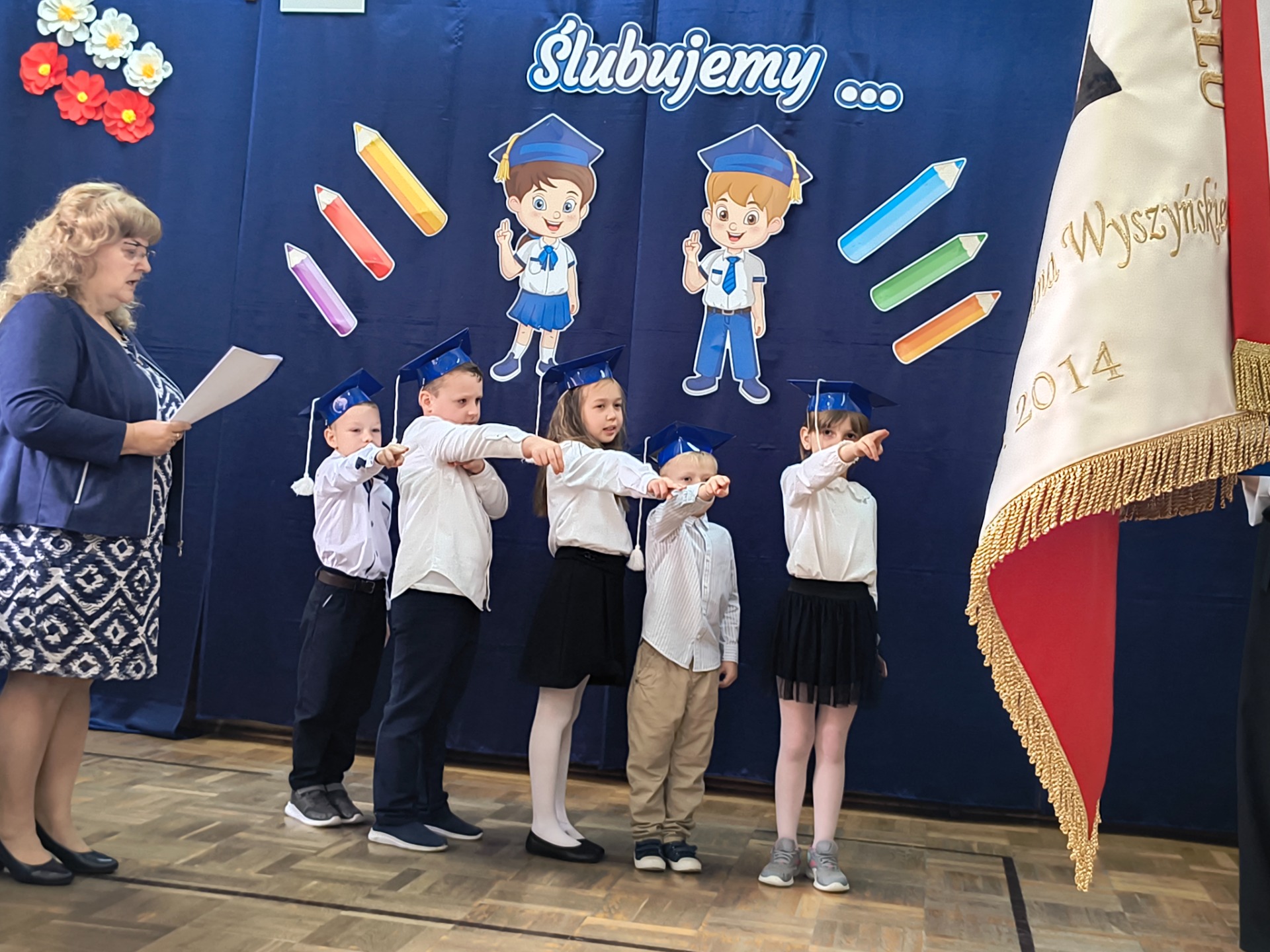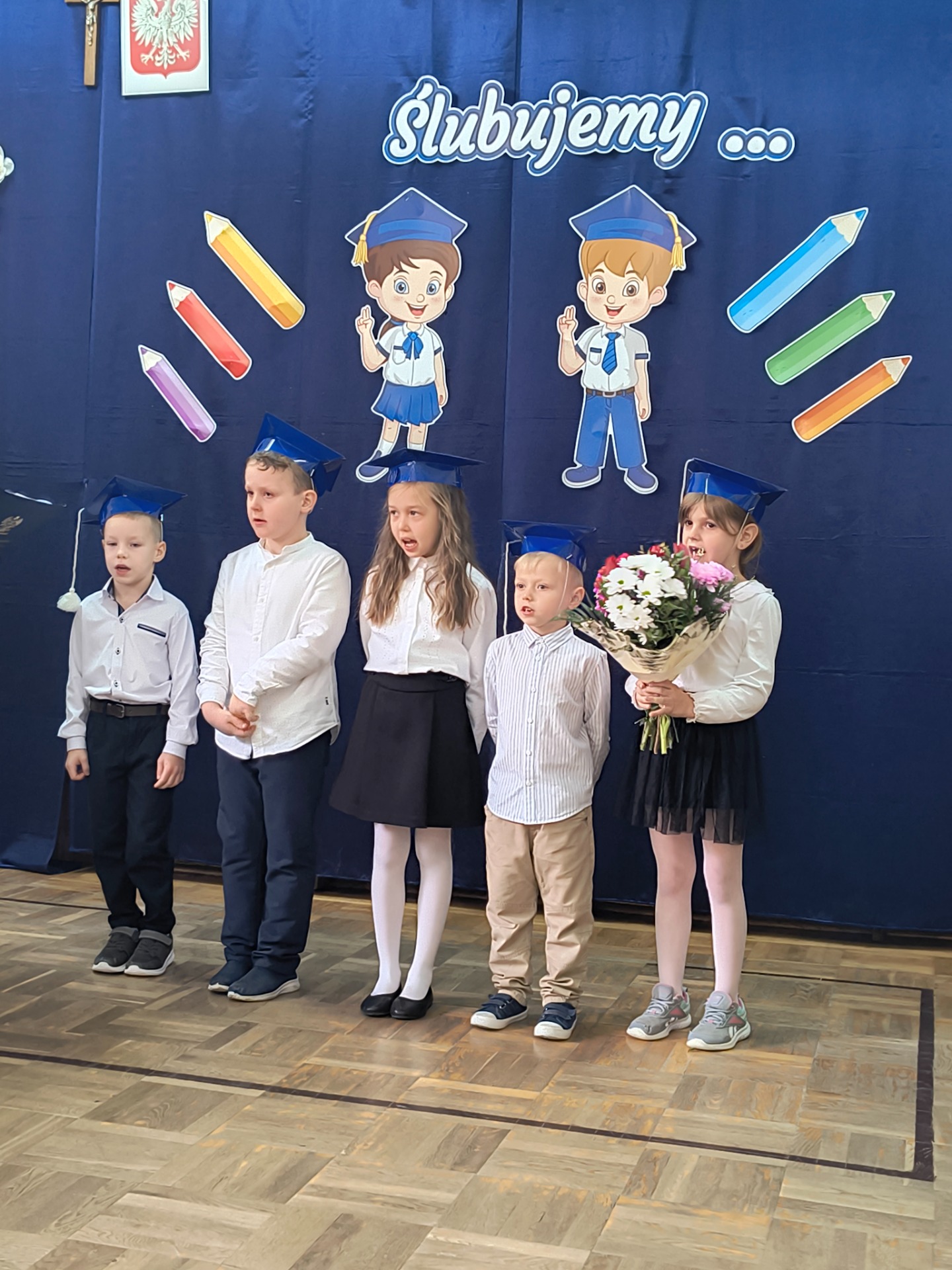 Uroczystość rozpoczęła się od części artystycznej przygotowanej przez uczniów klasy pierwszej pod opieką wychowawcy. Dzieci z ogromnym zaangażowaniem recytowały wiersze, śpiewały piosenki i prezentowały swoje umiejętności, zdobywając gromkie brawa od zgromadzonych gości, nauczycieli i rodziców.