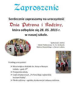 ZAPROSZENIE na Dzień Patrona i Rodziny